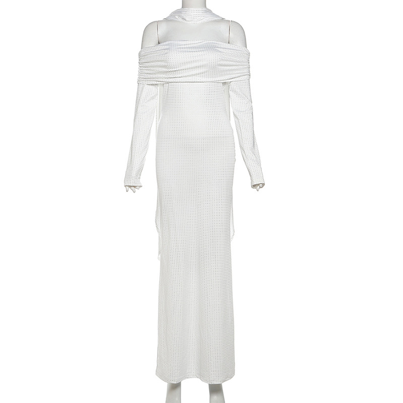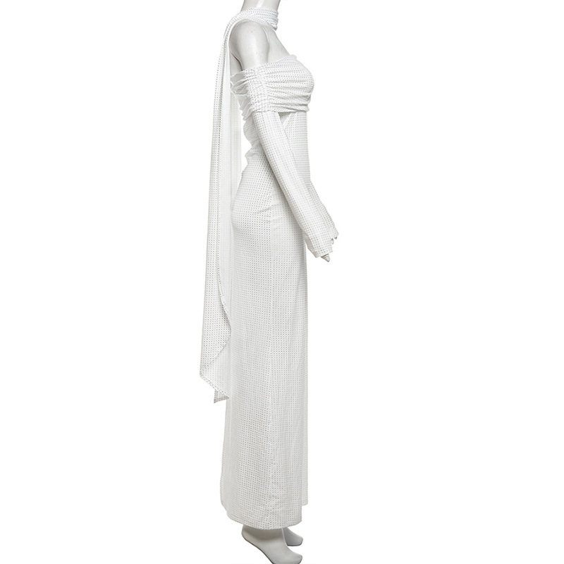 Elevate your spring wardrobe with this sexy, slim-fitting dress designed to turn heads. Featuring an off-shoulder backless design and a unique scarf collar, it adds a touch of elegance and allure. The long sleeves provide balance and comfort, making it perfect for day-to-night wear. Crafted to accentuate your silhouette, this dress ensures you feel confident and stylish wherever you go.