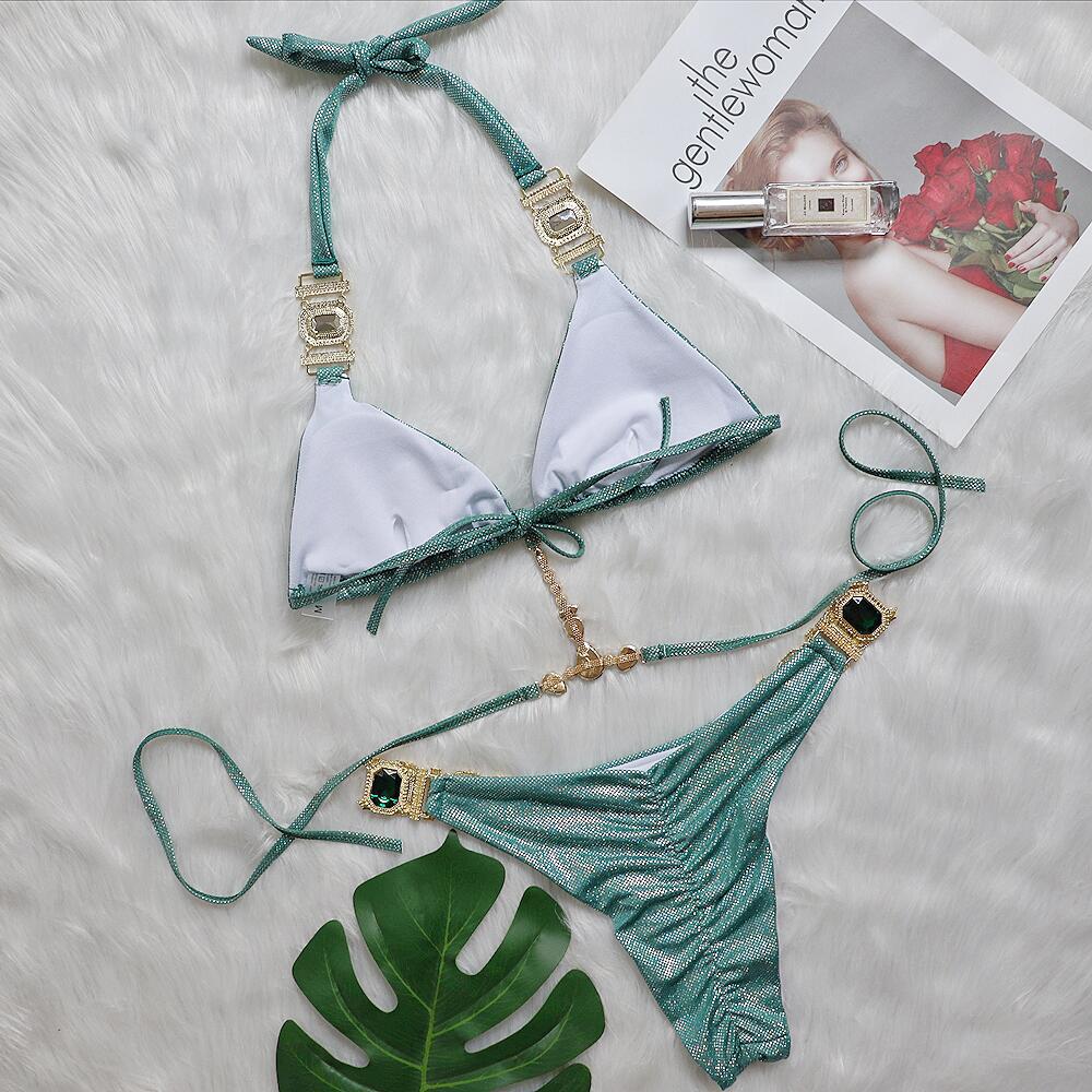 Sexy Crystal Diamond Bikini Strap Women Split Swimsuit Beach Swimsuit