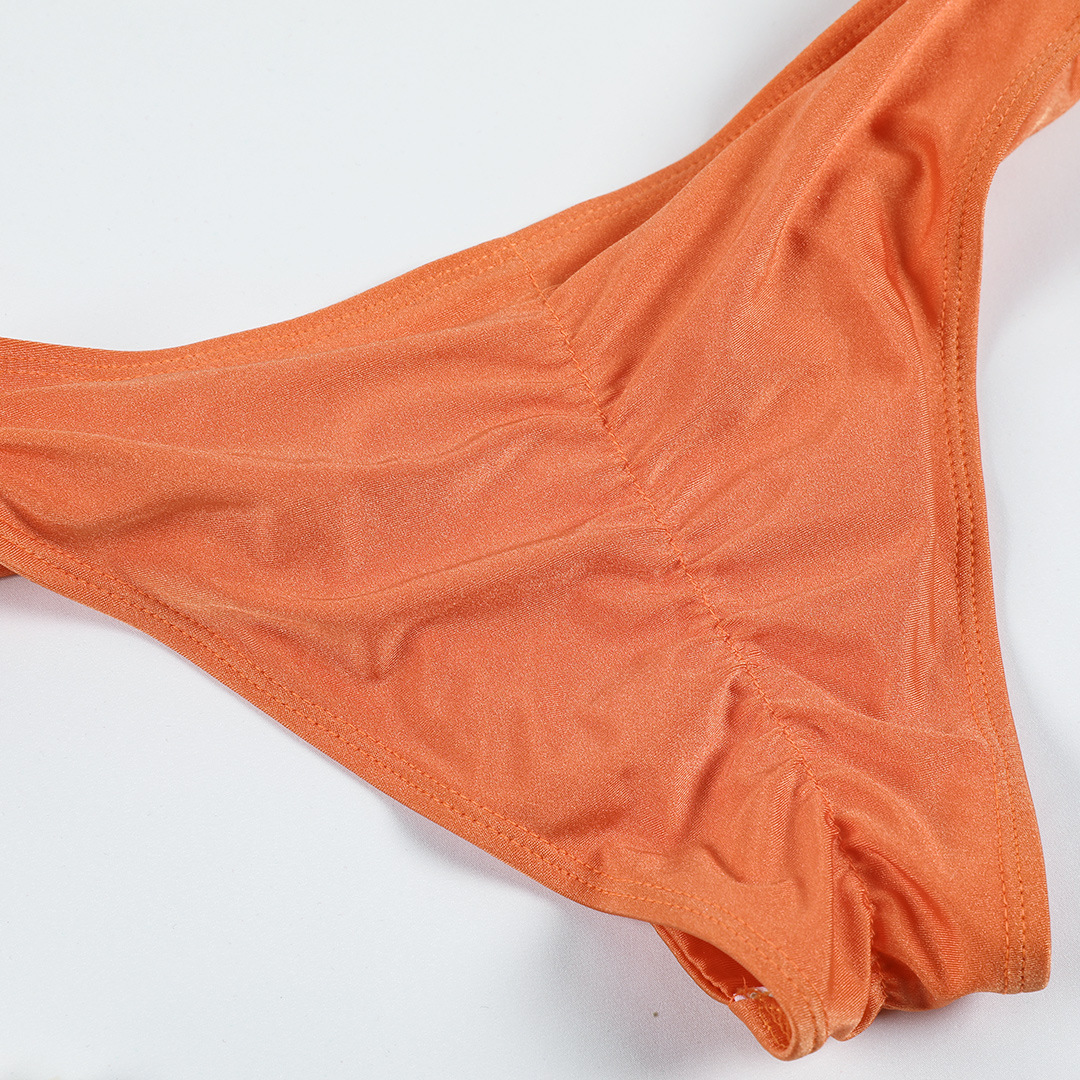 Solid Color Knotted Sexy Lace up Bikini Light Nylon Split Swimsuit Women