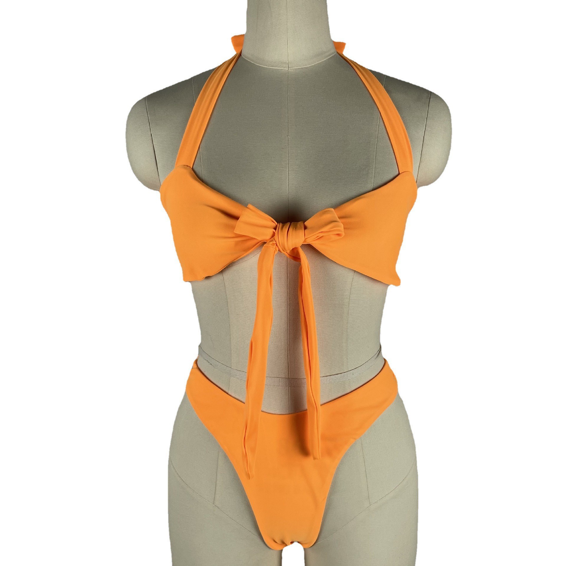 Bikini Split Swimsuit Women Gathered Solid Color Nylon Swimsuit